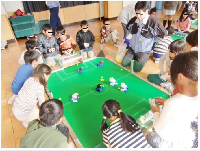 ③さて、子どもたちにとってはお待ちかね。ロボットを操作して実際にサッカーゲームをやりました。