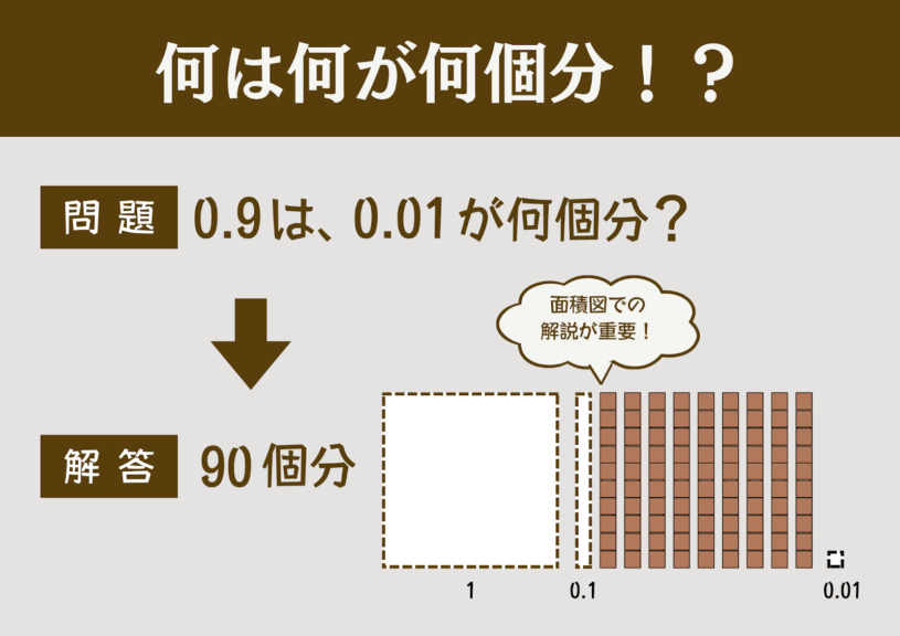 - 「0.9は0.01が●個分」 → 答え:90個分